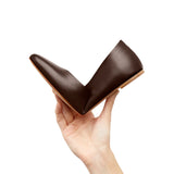 Handcrafted from water resistant and luscious apple skin, Camelia Espresso is a dark brown, soft pointed-toe flat. The slip on style ensures the impeccable fit, comfort and versatility. Handmade in Italy.