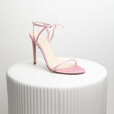 Handcrafted from biologic silk, apple skin and bio-based sugarcane molasses, Juniper reimagines the classic luxury heeled sandal with hand-stitched glass crystals. Juniper is a pink rounded-toed style with an adjustable, smooth ankle strap and a 105MM heel. Handmade in Italy.