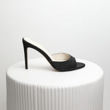 Handcrafted from biologic silk, apple skin and hand stitched glass, Tulipana Midnight is a black rounded-toe mule with a 100mm stiletto heel. The slip on style ensures the impeccable fit, comfort and versatility. Handmade in Italy.